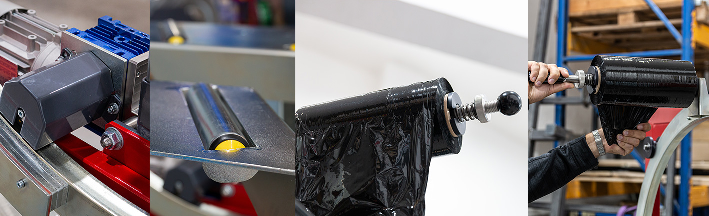 Ovládání je pomocí nožního spínače a panelu, kterým je možné regulovat rychlost otáčení, případně uvézt rotující kruh do výchozí polohy (pro snadnou výměnu stretch folie).